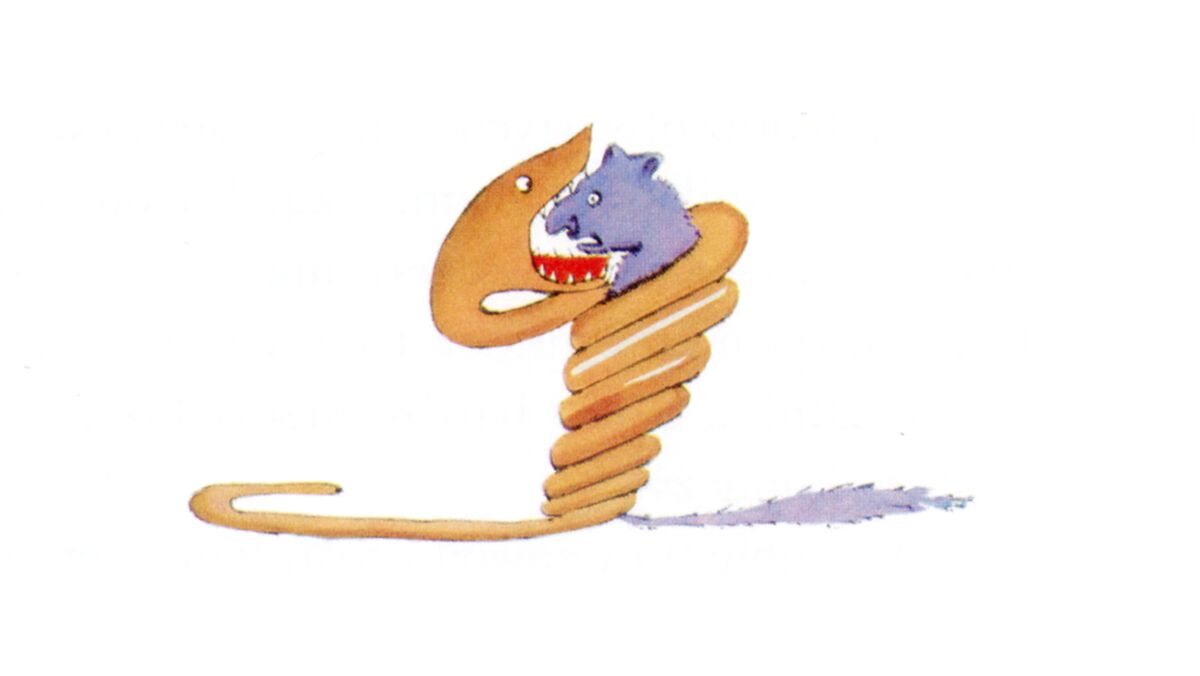 WążW książce tej napisano: „Węże boa połykają zdobycz w całości, bez przeżuwania. Potem nie mogą się ruszyć i zapadają w półroczny sen, w czasie którego trawią”.